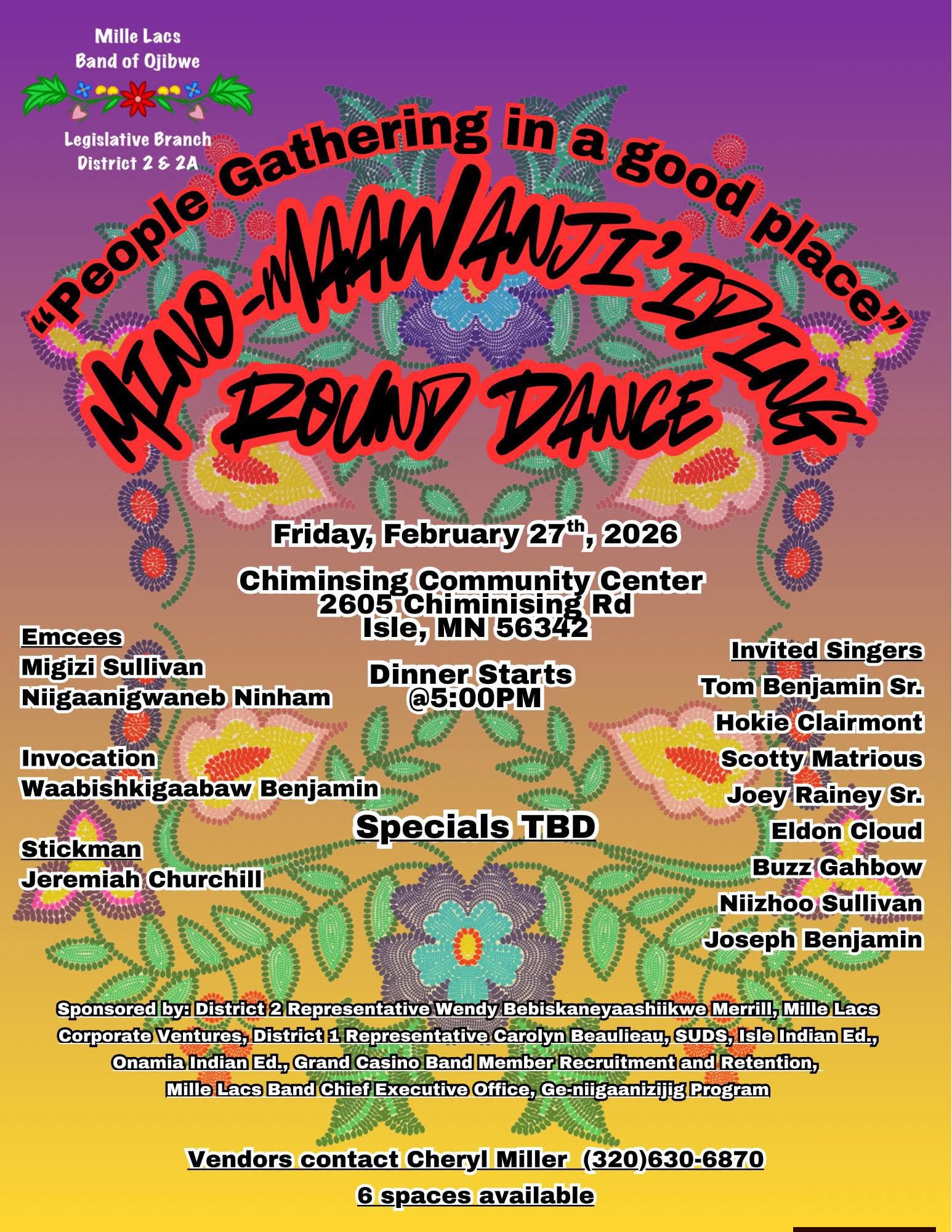 Isle, MN. Chiminising Community Center, 2605 Chiminising Rd.